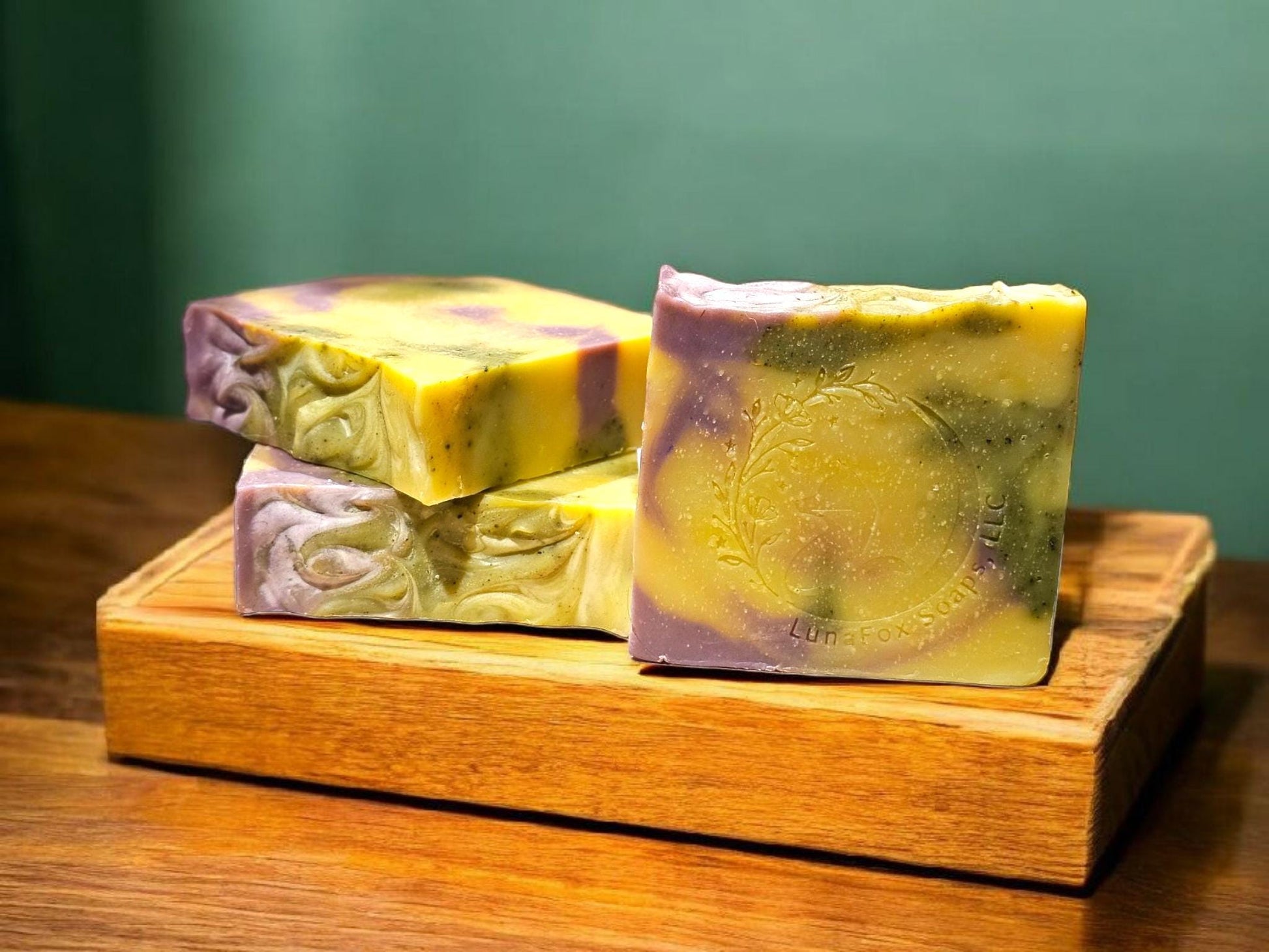 A calming fusion of olive oil, avocado oil, and cocoa butter offers deep nourishment and a creamy lather. Enriched with carrot juice and spirulina powder for a skin-loving boost of antioxidants and minerals. Lightly scented with pure cedarwood atlas, sweet orange, and patchouli essential oils for a grounding, earthy aroma. Gentle, vibrant, and natural.
